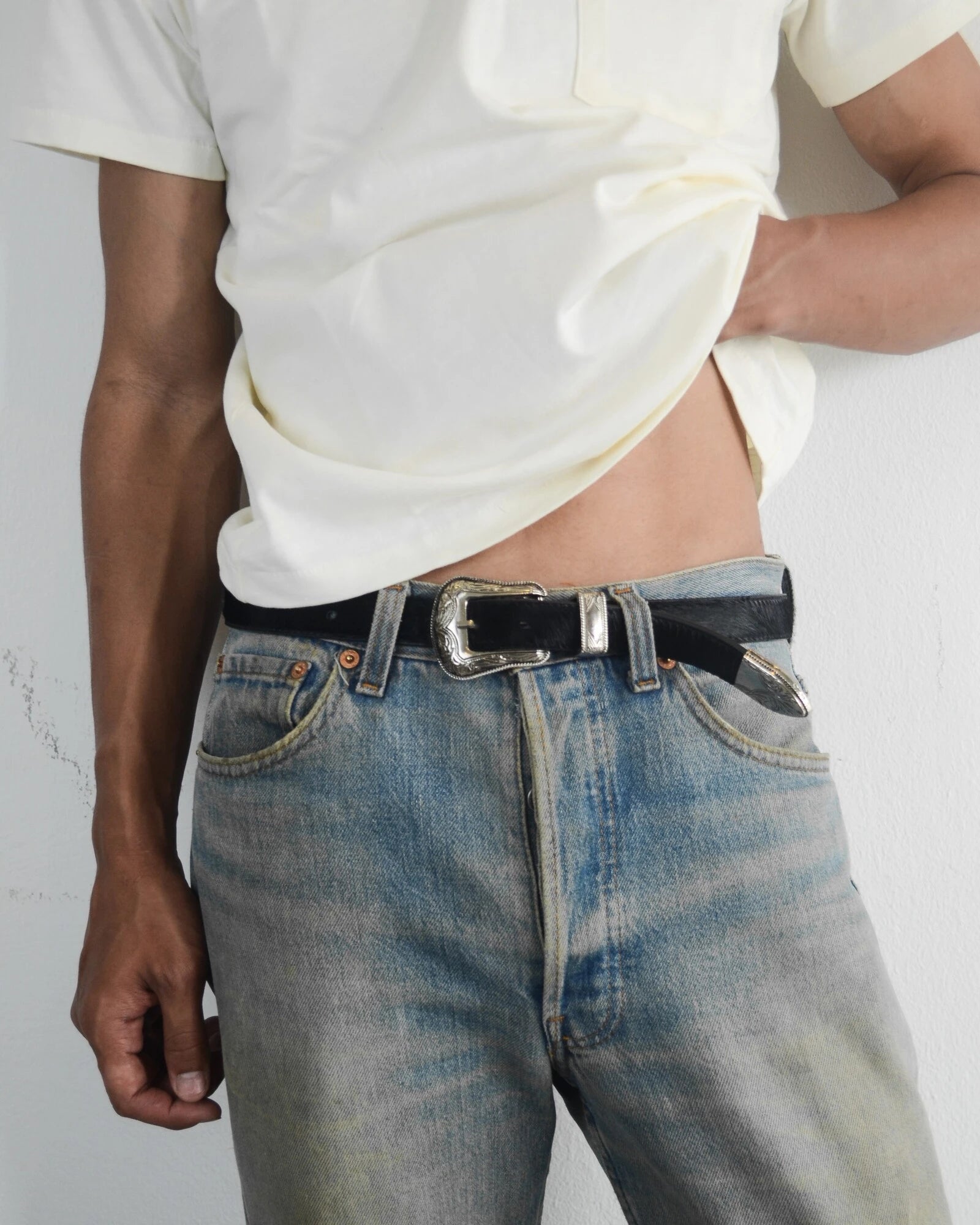 Crafted from genuine pony hair cowhide, our Ranger Western Belt features a slim main strap and western-engraved hardware for a refined yet rugged finish.